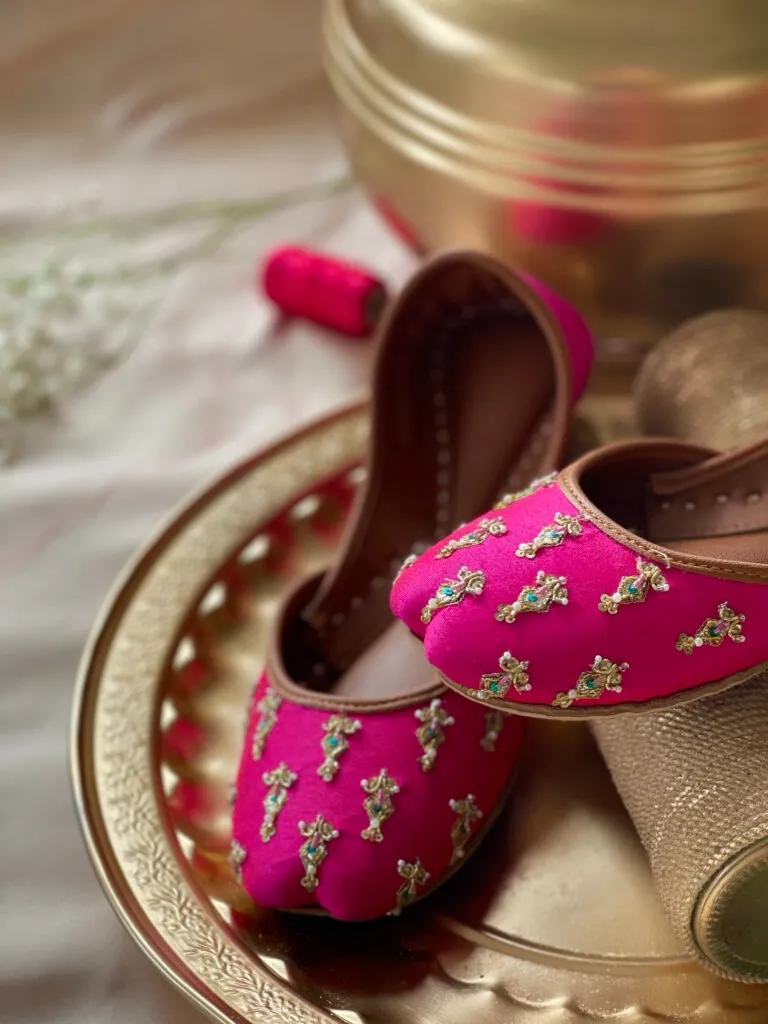 Explore our latest pair maharaani, a shocking pink color with small pearl designs merging style and comfort and elevating productivity. Aura by Aliya crafts traditional footwears with the finest materials made with pure cow leather.Â