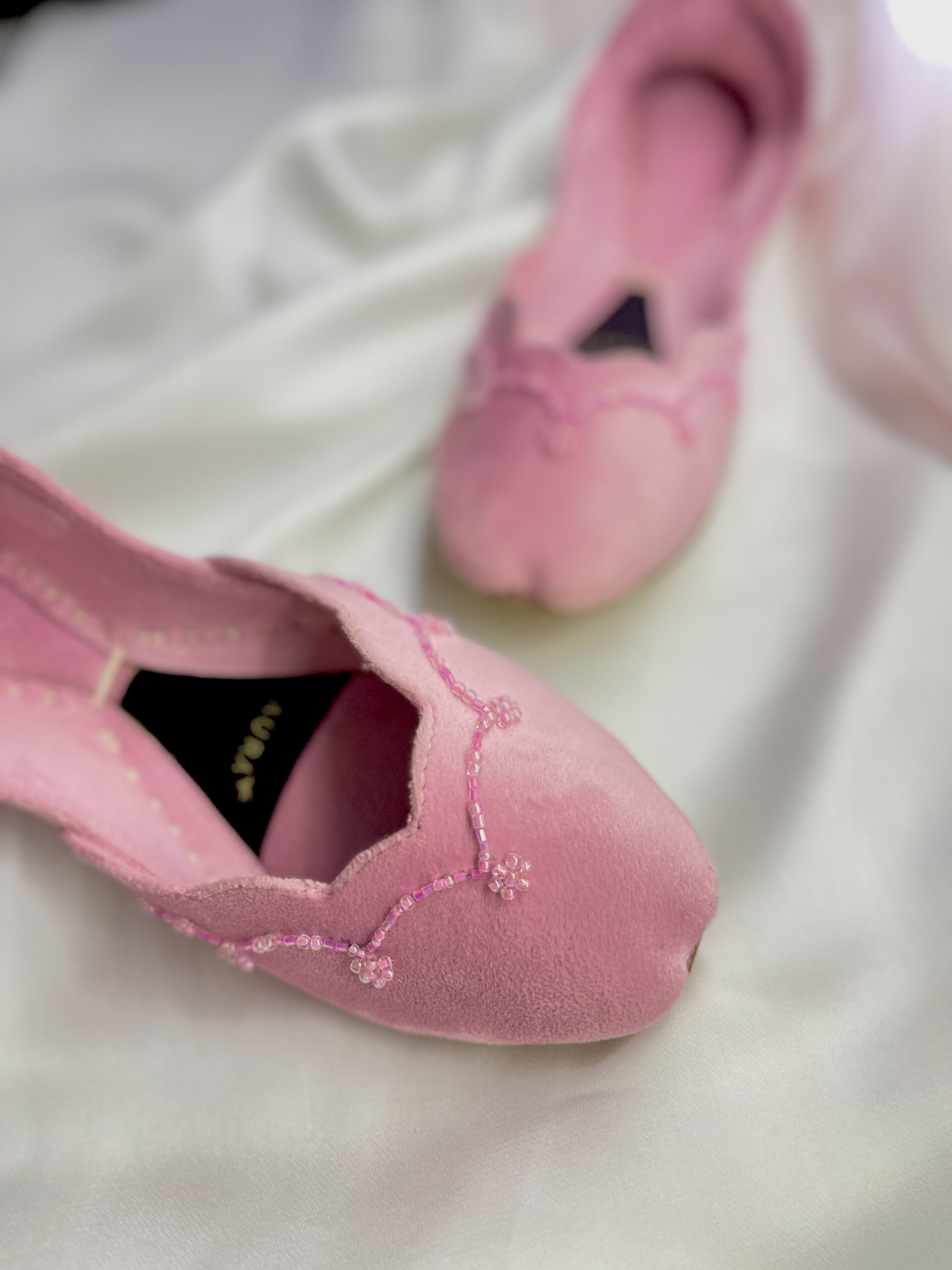 Elevate simplicity with pink bliss, a baby pink hue with small same-color beads gives a much prettier look. This sleek pair is also easy to wear. Line up your style with this cute footwear.