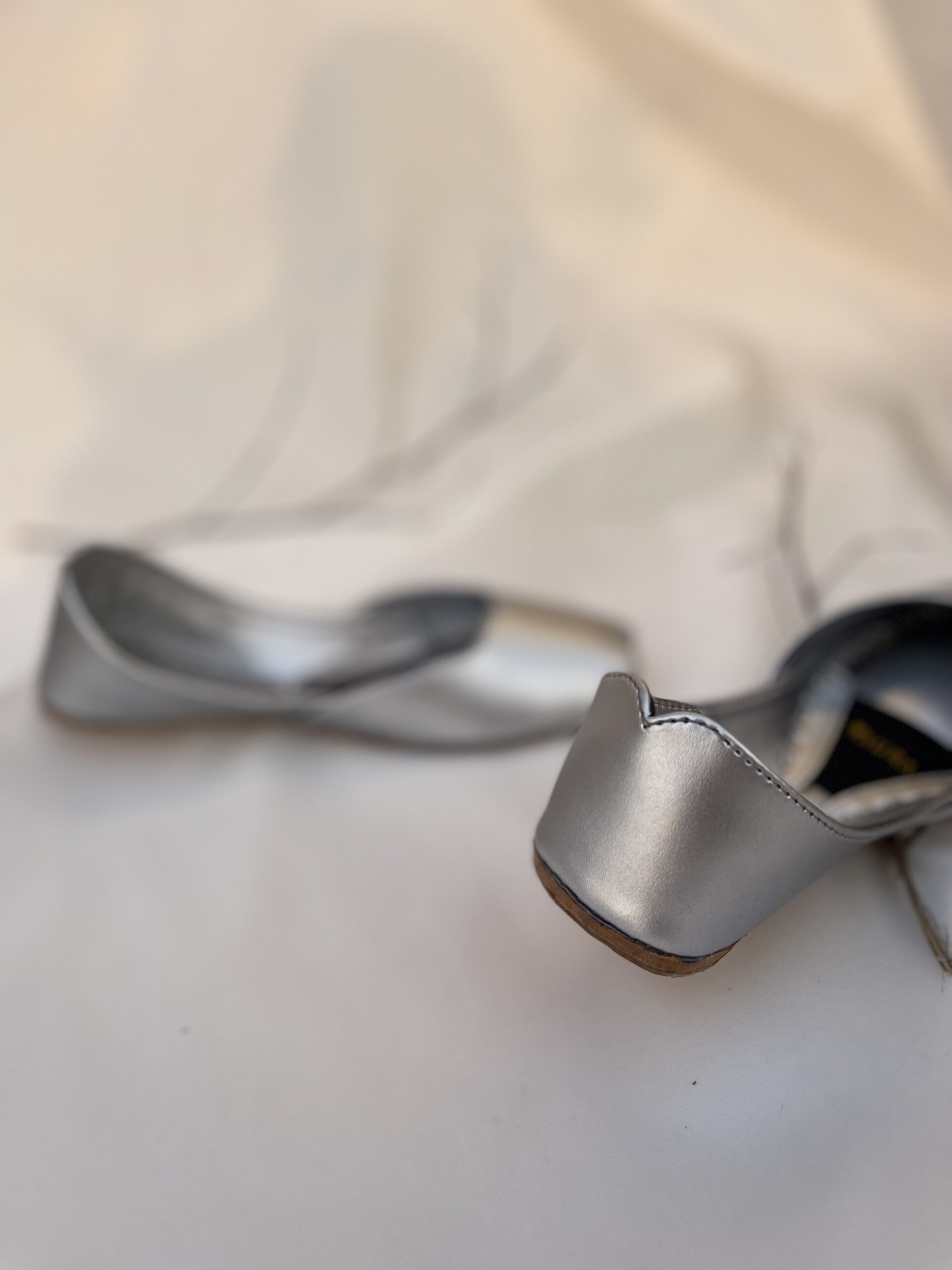 Explore our new elegant pair of silver from solids, plain decent shiny traditional footwear, and can style up with a variety of your outfits.Â